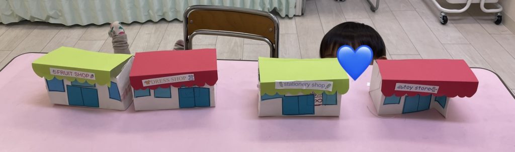 果物屋さん、服屋さん、文具屋さん、玩具屋さん…色々なお店を紙袋で作ってみました。